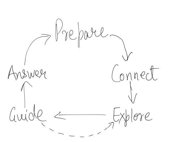 Guide: During the interview, an interviewer can also serve as a guide, helping the candidate get unstuck (if needed) and providing a general sense of direction if desired. The interviewer is also responsible for answering follow up questions from the candidate to provide more clarity on questions, especially open-ended ones. This step is highly subjective based on how the interviewee performs but the general idea is that the interviewer can be essential in unblocking the candidate and also steer the candidate in the right direction if the situation demands. Once the candidate has taken up the guidance, the exploration can continue (denoted by the dashed line in the depiction of the framework). The explore and guide steps can continue in a loop until enough signals have been received.